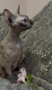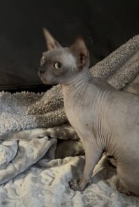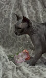 Le sphynx par excellence, d’une douceur absolue, extrêmement câlin, une véritable boite à ronrons.