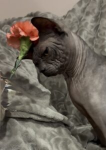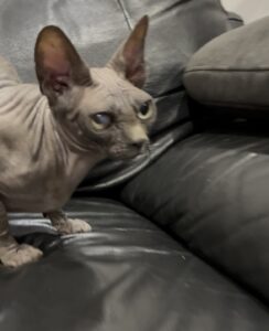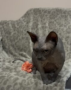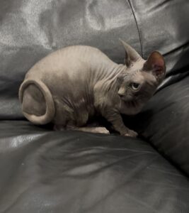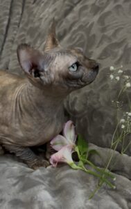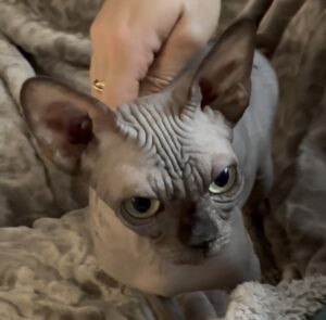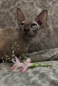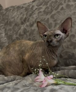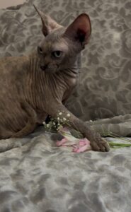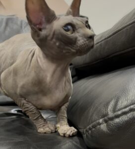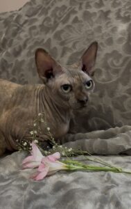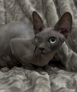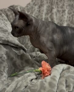 Le sphynx par excellence, d’une douceur absolue, extrêmement câlin, une véritable boite à ronrons.